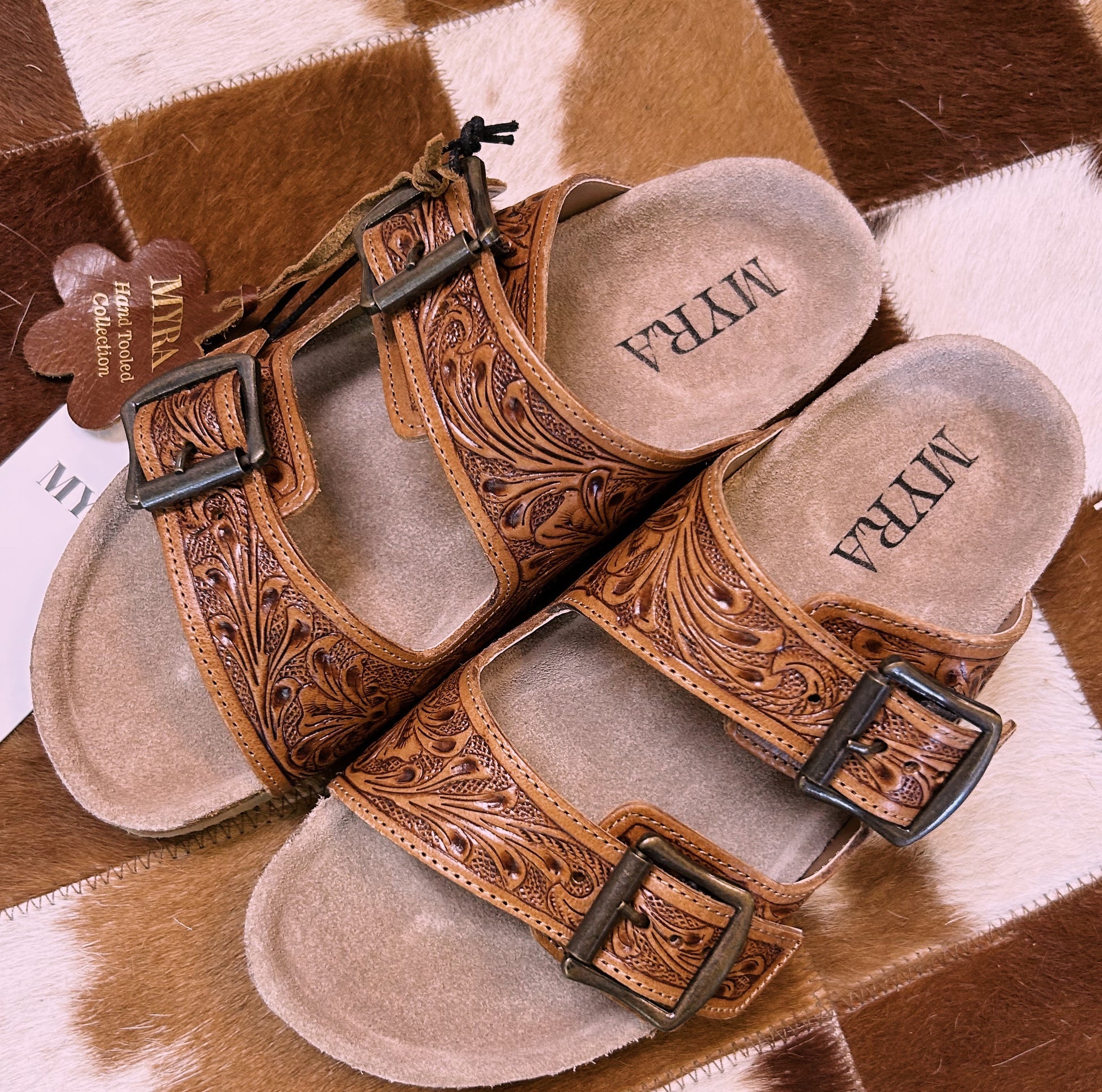 These hand-tooled leather sandals are GORGEOUS!!! They're so cute for any occasion! They're reviewed as true to size and comfy!